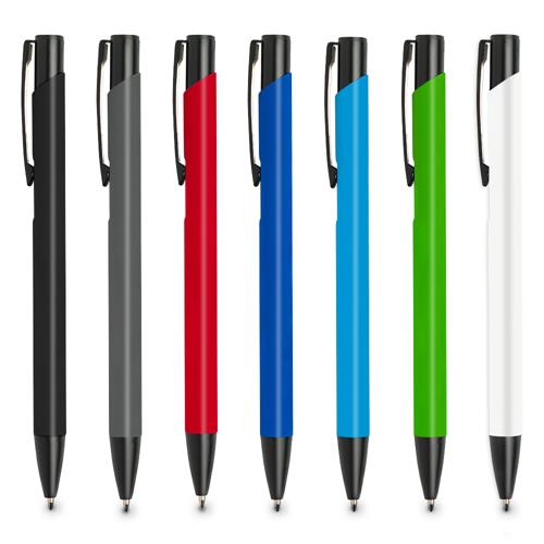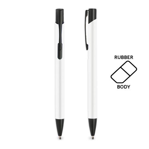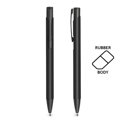 Esferográfica em alumínio, com acabamento em borracha